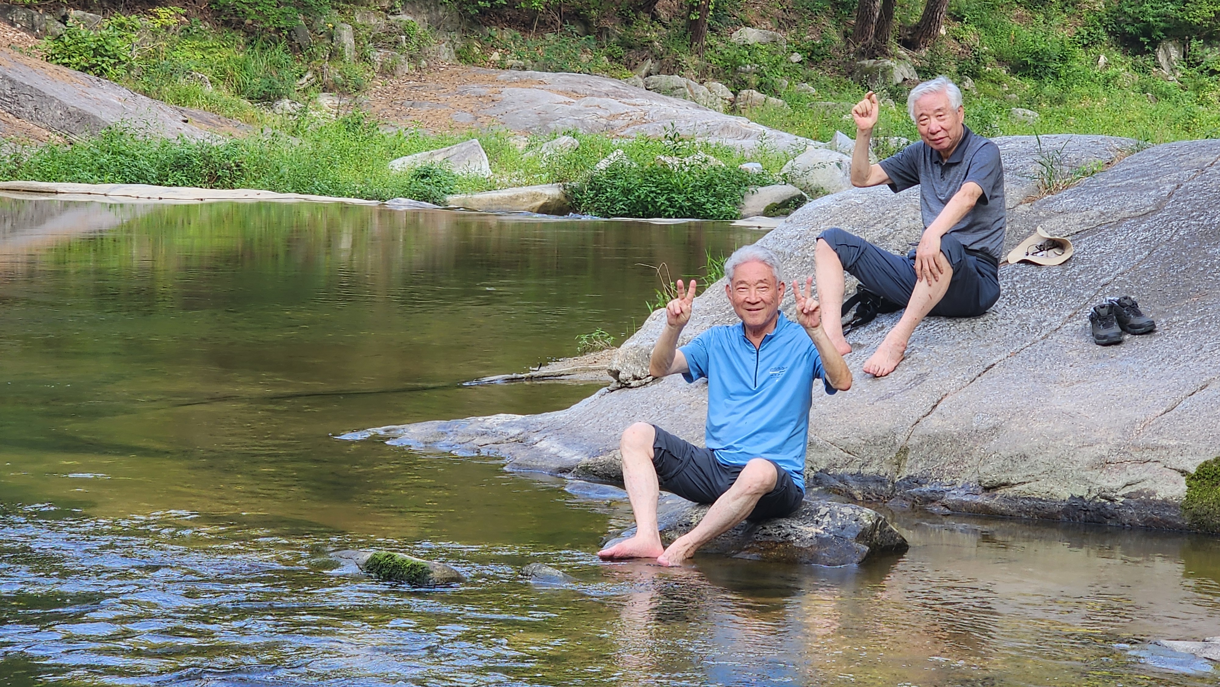 워낙 가물어서 그런지 수량도 기대 이하이고 계곡수도 미지근하다